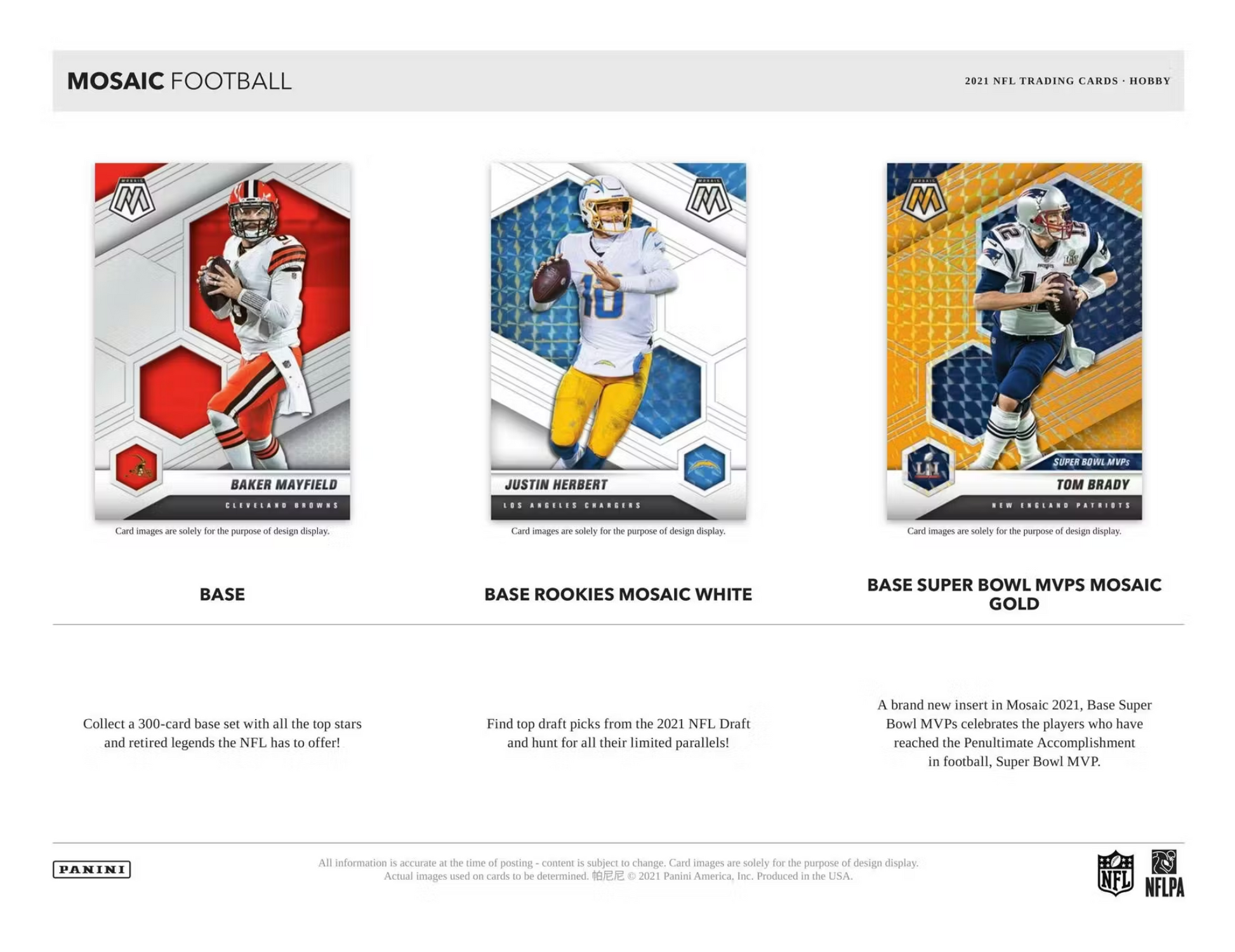 BASE SUPER BOWL MVPS: A brand new insert in Mosaic 2021, Base Super Bowl MVPs celebrates the players who have reached the Penultimate Accomplishment in football, Super Bowl MVP.