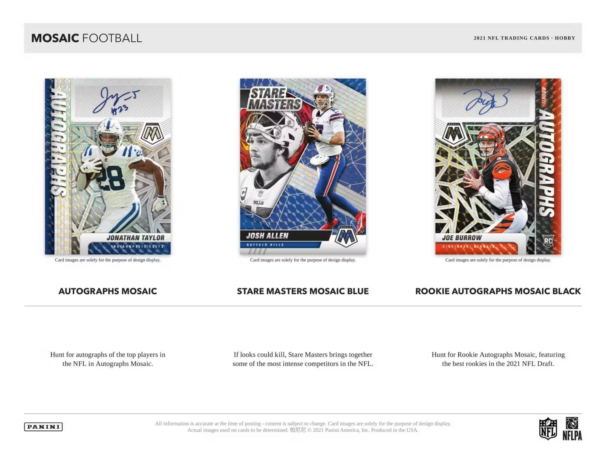 After an immensely popular debut, Mosaic Football is back in 2021. Loaded with parallels, inserts and autographs of all the best rookies, current stars and retired legends the NFL has to offer.