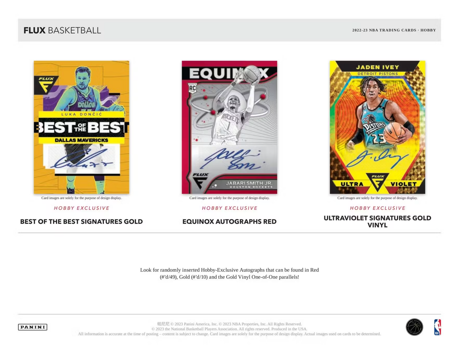 Flux features a 250 card base set, made up of 200 Veterans and 50 Rookies! Look for Hobby-Exclusive parallels including Red, Blue (#’d/99) , Supernova (#’d/75), Sunrise, Moonlight, Solar Eclipse (#’d/49) , Lunar Eclipse (#’d/25), Gold (#’d/10), Green (#’d/5) and the Gold Vinyl One-of-One!