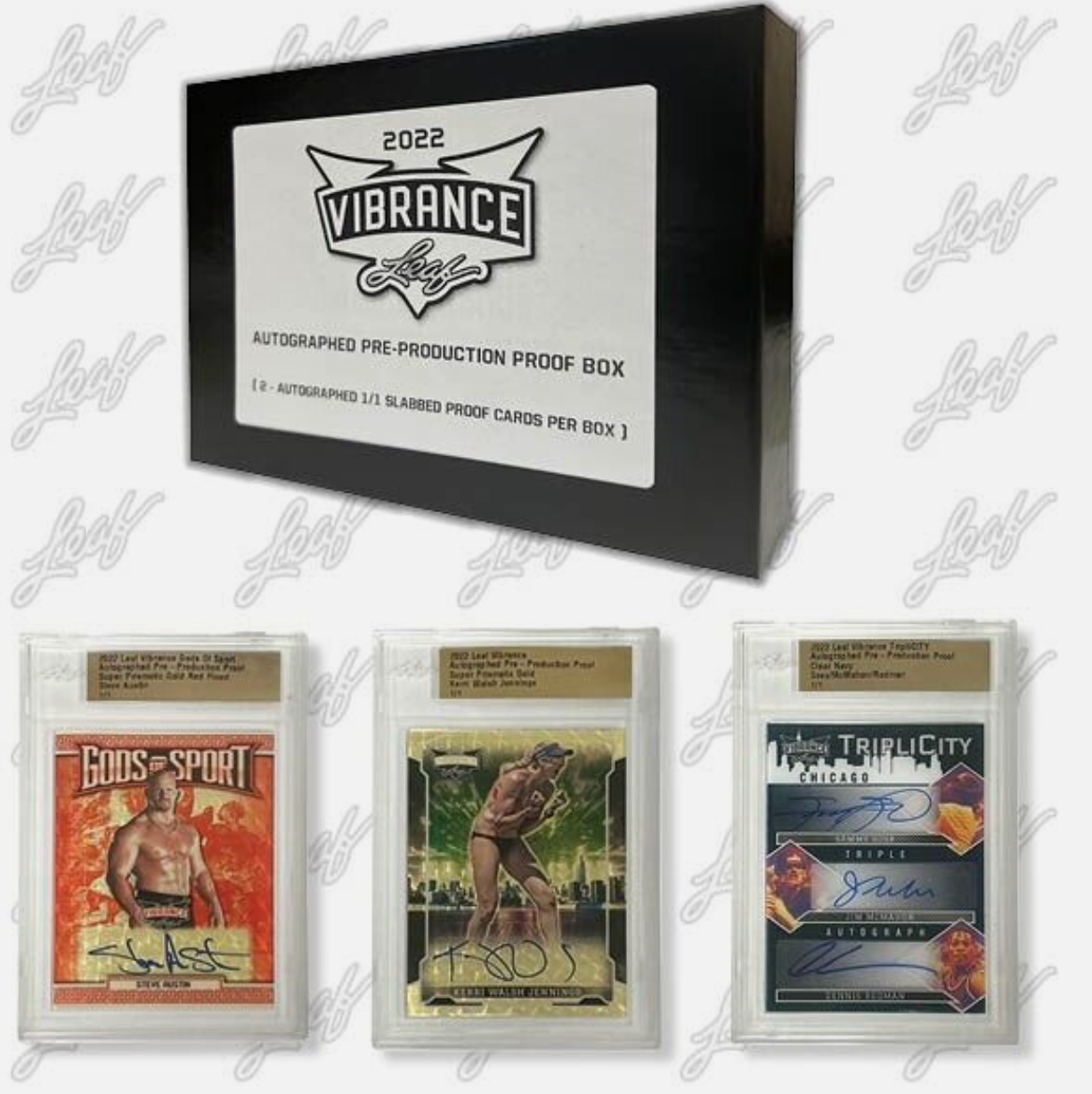 Each box contains 2 slabbed one-of-one autographed pre-production proofs from 2022 Leaf Vibrance Multi-Sport!