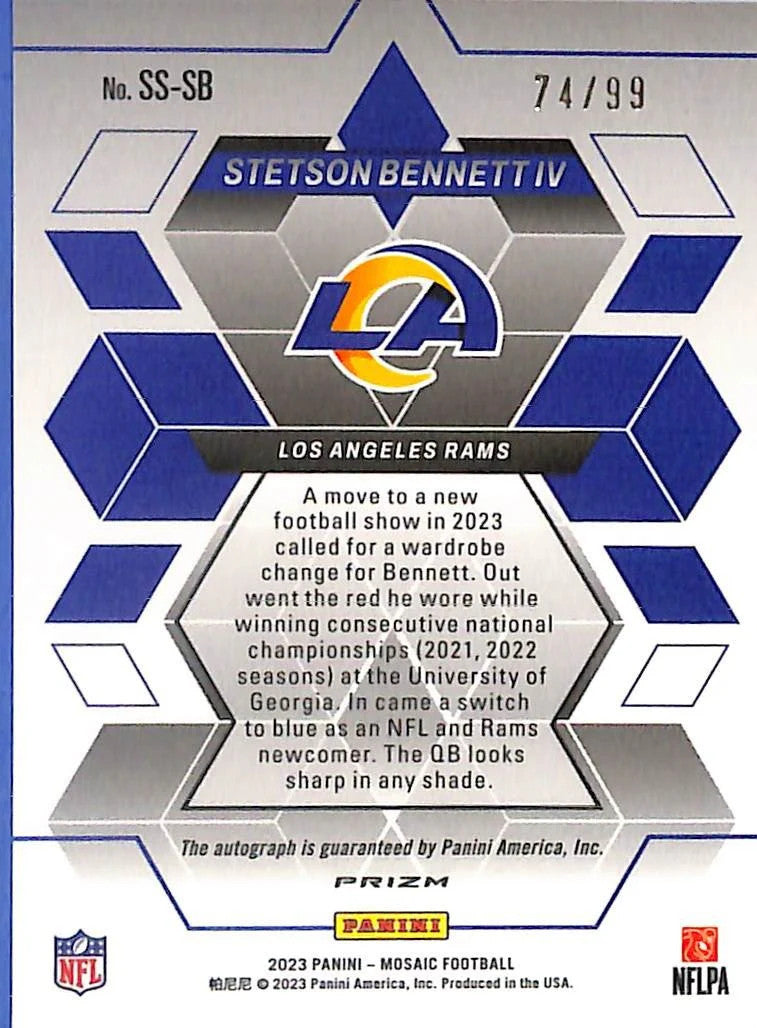 2023 Mosaic Stetson Bennett Auto Autograph Rookie RC Red /99 Rams