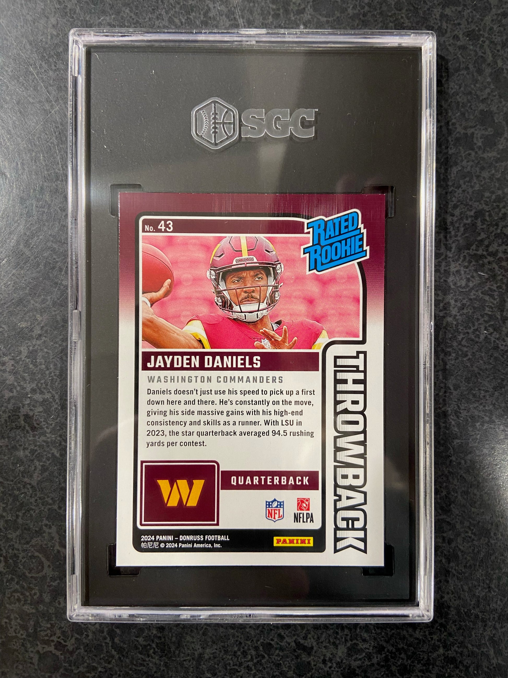 2024 Donruss Jayden Daniels Throwback Rookie #43 SGC 10 Gem Mint