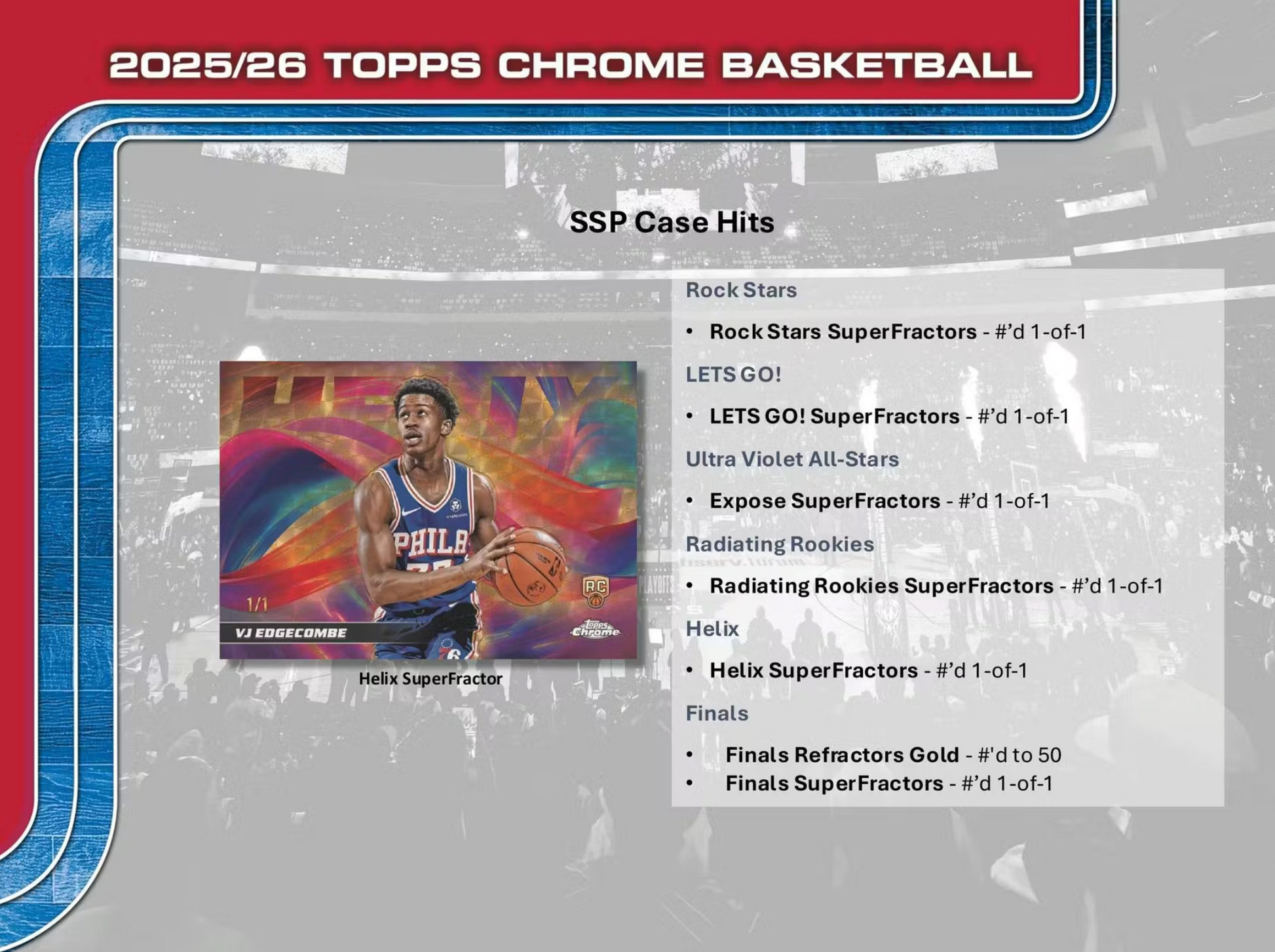 Also, be on the lookout for SSP Case Hits and Inserts: LETS GO!, Helix, Glass Canvas, Advisory, Paradox and Patented!