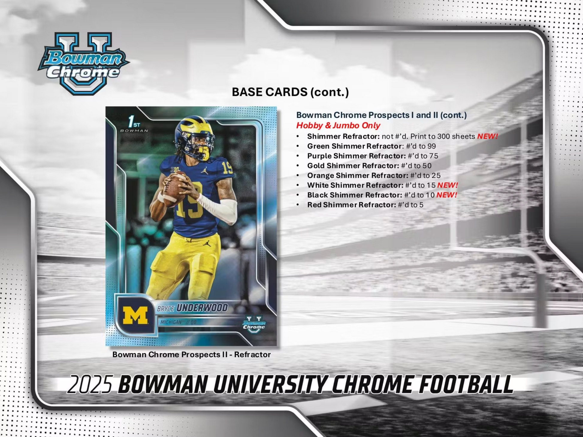 - Gold Shimmer Refractor: #'d to 50 (Hobby & Jumbo Only)