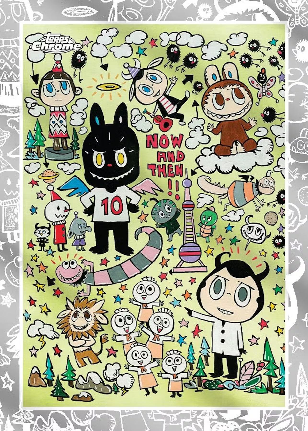 Topps has partnered with How2Work and Pop Mart for the first time ever to bring you the 2025 Topps Chrome Labubu 10th Anniversary box! Each box includes four Chrome base cards and one Chrome parallel, plus a collectible keyring case to display your card just like your Labubu! Cards feature artwork from Labubu creator and artist Kasing Lung. Collectors can chase vibrant Chrome parallels including Refractors, 10th Anniversary logo borders and 1-of-1 SuperFractors, along with ultra-rare Artist Autographs.