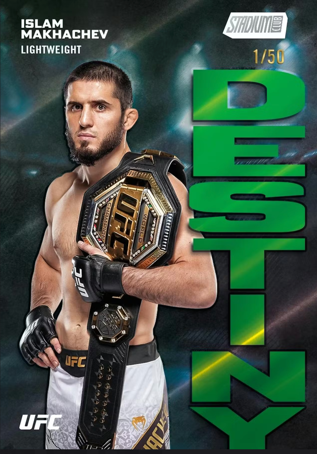 Step into the octagon like never before with the 2025 UFC Topps Stadium Club Collection-a trading card set that brings the raw power, excitement, and unforgettable moments from the octagon to life. Featuring dynamic photography, ultra-high-quality card stock, chrome technology, and unique parallels, this collection captures the intensity of every strike, submission, and knockout. Look for autographs of yesterday, today, and tomorrow's top UFC fighters and a collection of short printed inserts.