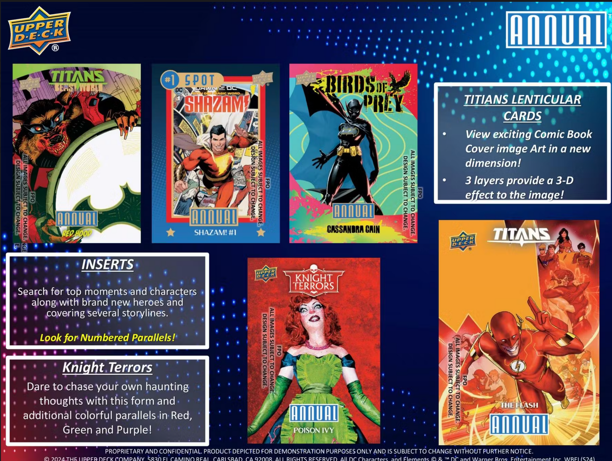 2023/24 DC Annual celebrates a full year of comics in the DC Universe. This Trading Card set reflects DC's past and embraces the future through the heroes of yesterday, today and tomorrow!